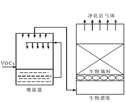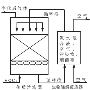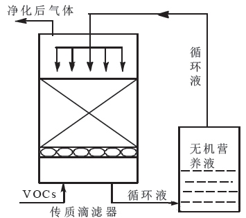 生物洗滌器(下圖)反應條件溫和、操作穩定;但其運行成本高,處理的VOCs 需要易溶于水。