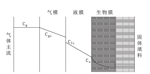 ②在濃度差推動下揮發性有機物從液膜內擴散到生物膜中;
